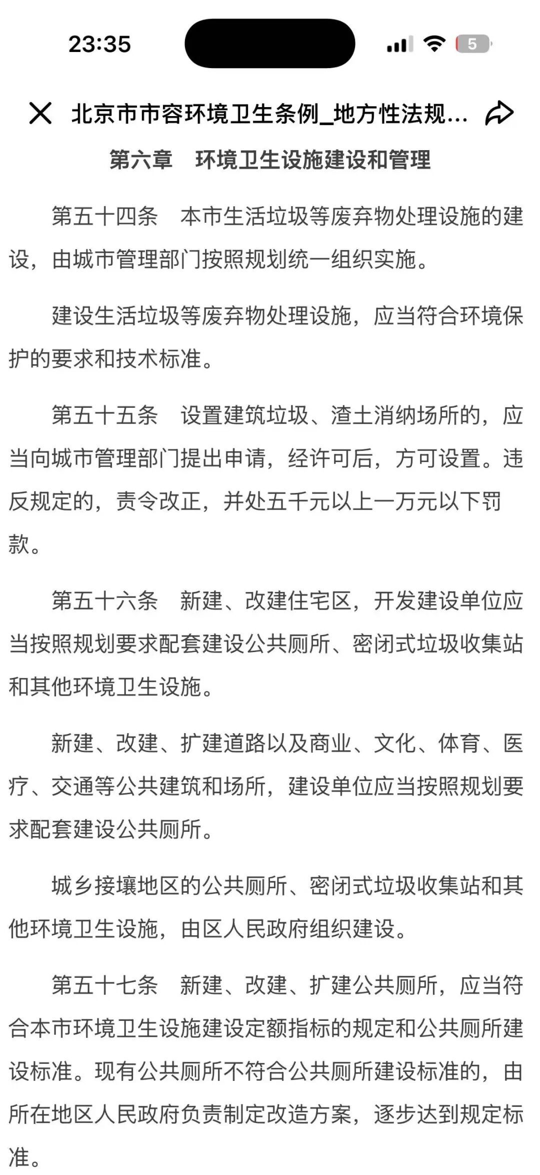 《北京市市容环境卫生条例》第六章第五十六条规定内容
